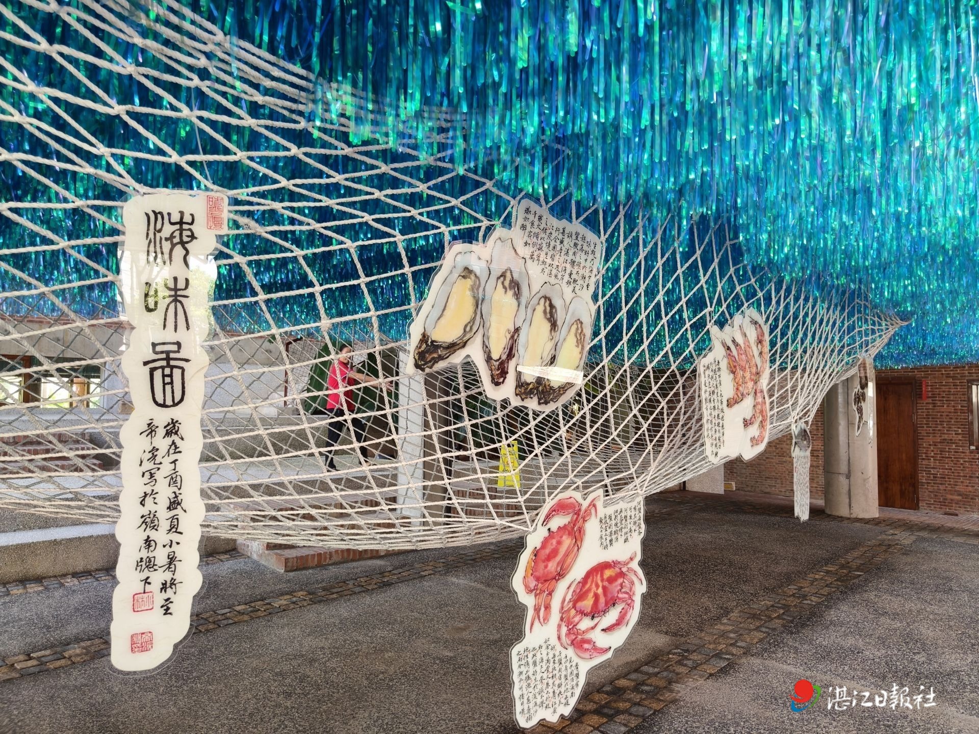 此次展覽以海洋文化為核心,展品中呈現(xiàn)的趕海景象和歸航燈火,正是吳川人民與海相依、和諧共生的真實縮影。畫展現(xiàn)場以漁網(wǎng)、海浪、船為元素,搭建了充滿海洋氣息的打卡場所,有倒懸于天幕的海面,有竹編的浪濤,也有凝聚海水深藍的墻面,向生長于海邊的人們提供了另一種觀海的角度。在開設(shè)畫展的同時,林帝浣也為吳陽客廳設(shè)計了相關(guān)的衍生產(chǎn)品,如打卡章、互動印刷等,通過有趣的文創(chuàng)方式豐富游客的體驗。