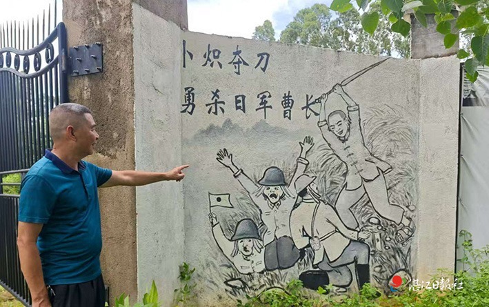 同年11月,村民卜熾的壯舉成為這段歷史中最動人的篇章。這位50多歲的普通農民在甘蔗林被日軍抓住后,面對審問始終沉默,趁敵不備奪過日軍曹長的指揮刀猛砍,隨即鉆入密林脫險。“卜熾爺的勇氣體現在骨頭里!”當天,圍坐的老人向記者講述這段傳奇時仍難掩激動。記者跟隨卜權走進深坭塘抗日紀念園,在“卜熾奪刀勇殺日軍曹長”的墻繪前,卜權指著畫面生動還原:“當時他孤身一人與日軍周旋,用最原始的武器捍衛尊嚴,這種精神至今仍激勵著我們。”