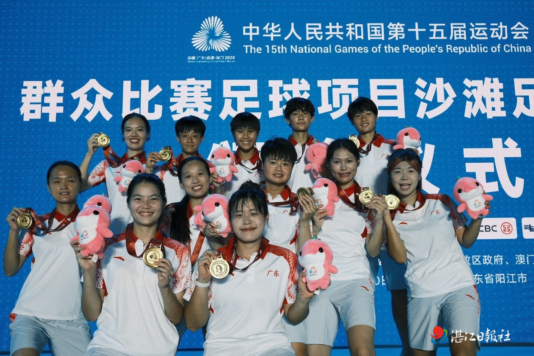 經過為期六天的激烈爭奪,8月10日下午,第十五屆全國運動會群眾比賽沙灘足球項目的賽事在陽江落下帷幕。女子組決賽中,“湛將”表現出色,湛江籍主力門將左撲右擋,主力前鋒左沖右突,更在比賽最后一分鐘射入扳平比分的關鍵球,助力廣東隊在點球大戰中力克浙江隊,奪得冠軍。