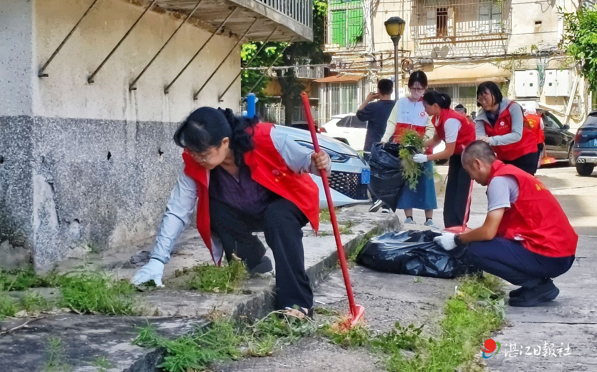 在霞山區(qū),海濱街道海寧社區(qū)攜手共建單位,聯(lián)合網格員、志愿者及居民共40人,對無物業(yè)管理的小區(qū)開展環(huán)境整治。志愿者們被分成若干小組,分工明確,有的負責清掃道路上的枯葉垃圾,有的拔除墻角、花壇邊緣的雜草,將小區(qū)環(huán)境打掃得干凈整潔,得到了居民的好評。