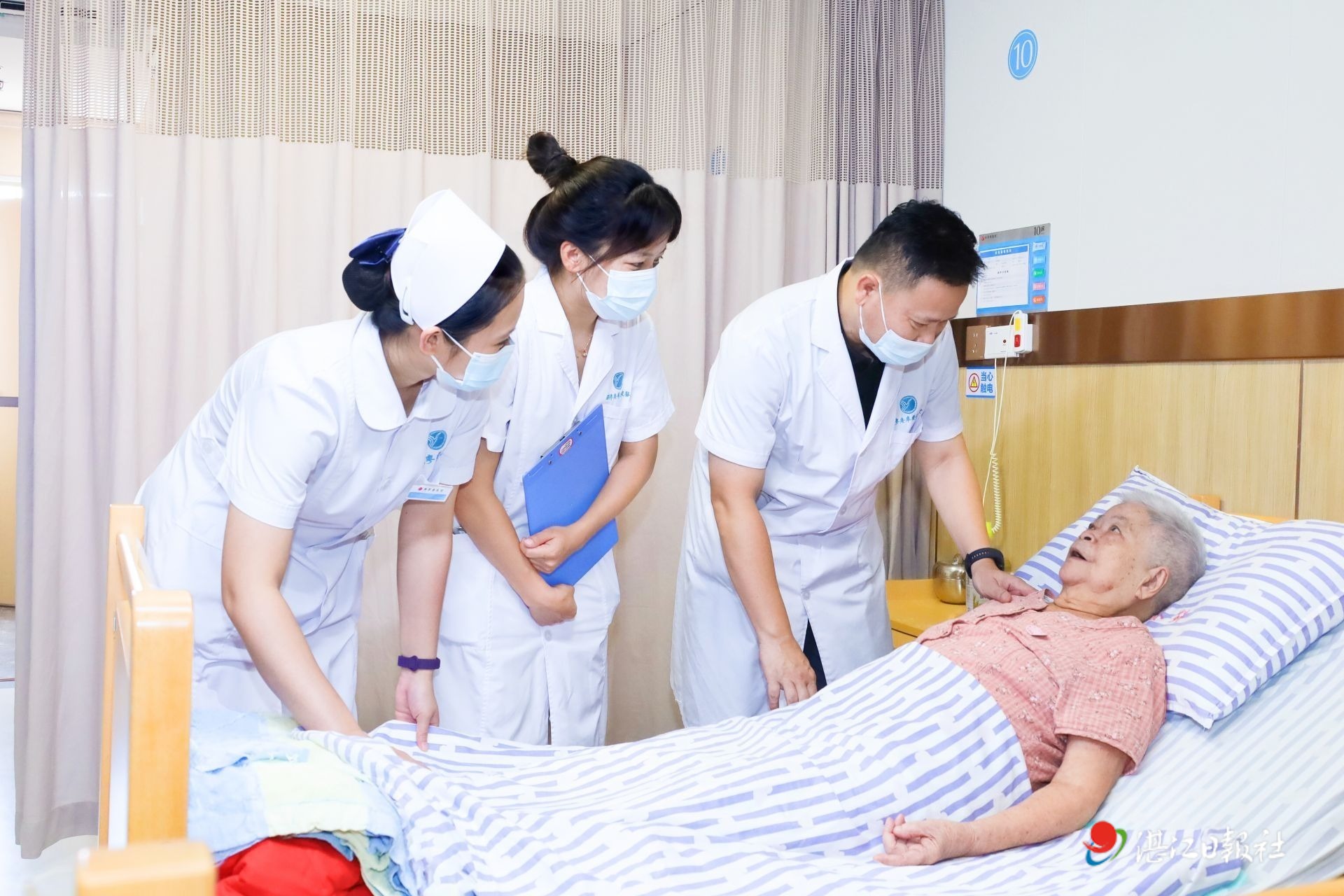 醫(yī)護人員診治老人。