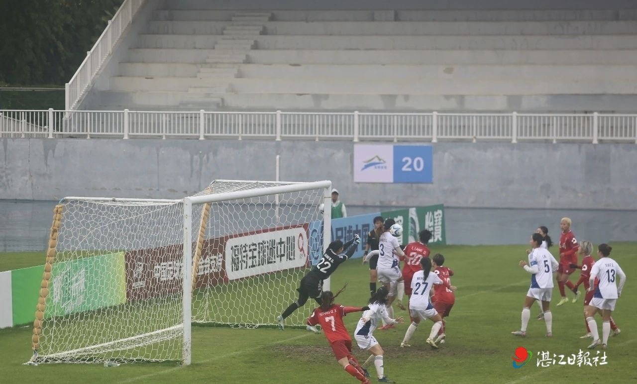 26日的決賽,在雨中進行。上半場,雖然上海盛麗女足B隊占據優勢,但湛江粵湛女足隊眾志成城,筑牢防線,讓對手未能獲得太好的破門機會。半場結束時,兩隊0:0互交白卷。
