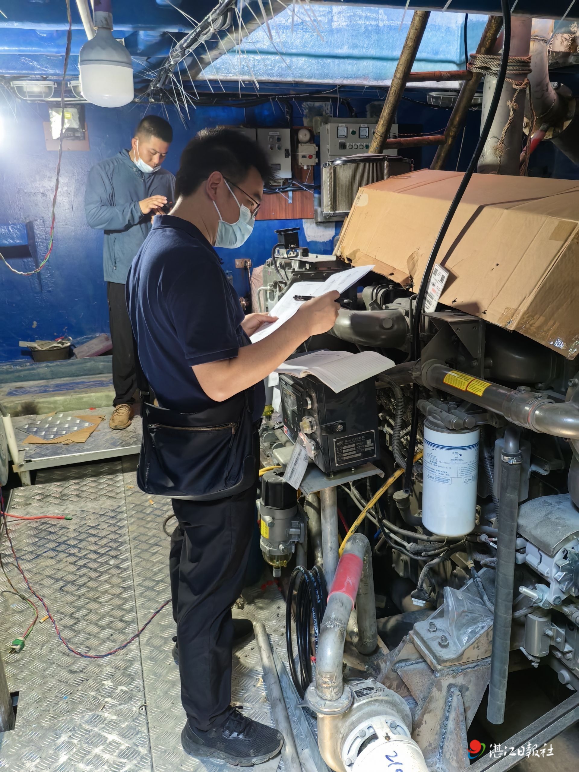 漁船漁港監(jiān)督科聞令而動,兩名經驗豐富的驗船師主動放棄國慶、中秋假期休息,第一時間抵達現(xiàn)場。他們嚴格對照船舶檢驗法規(guī)與技術規(guī)范,對船舶展開全流程、精細化檢查:重點核查船體結構完整性及水密性能達標情況,對舵系安裝精度、推進裝置運行狀態(tài)、錨泊設備可靠性、電氣系統(tǒng)安全性等關鍵環(huán)節(jié)進行專業(yè)技術把關。檢驗過程中,驗船師同步指導企業(yè)向轄區(qū)直屬大隊完成報備,協(xié)助落實“就近避風”“最大限度不遠離廠區(qū)”等針對性安全管控措施,確保船舶在臺風期間處于可控狀態(tài)。