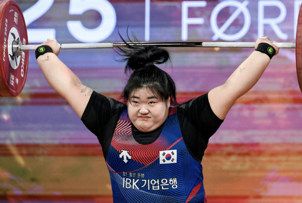 樸惠正在比賽中。圖片來自IWF官網(wǎng)