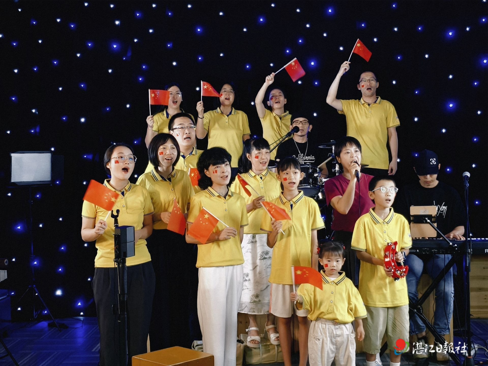 第一個走進直播間的是湛江市西南政法大學校友會。幾十位校友,職業各異,身份不同,平日里是法庭上的辯手、辦公室里的骨干、創業路上的拼將,那晚卻換上統一文化衫,手握麥克風,甚至帶上小朋友,合唱《我的祖國》《龍的傳人》等經典歌曲。校友們搖曳手中的國旗,小朋友們也害羞地跟著大人們輕聲歌唱,歌聲里那份赤子之情令人動容,讓錄制視頻一經發出,觀看人數和點贊量急劇上漲。當天錄完后,一位校友感慨:“多少年沒這樣放開嗓子了,唱的不是歌,是青春。”