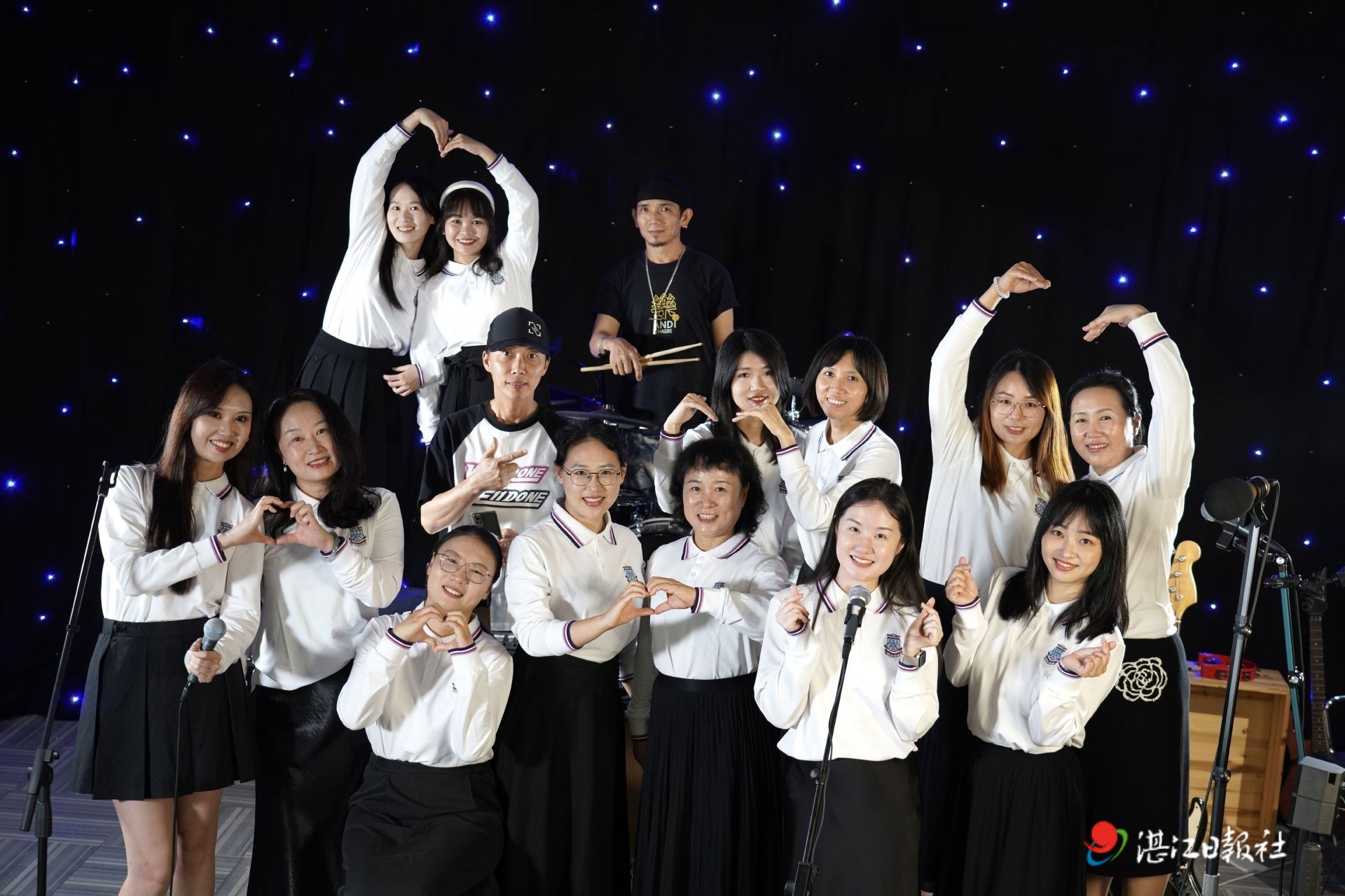 教師節前夕,湛江市東盟城學校教師們來到湛江日報社直播間合唱。 譚朝冠 攝