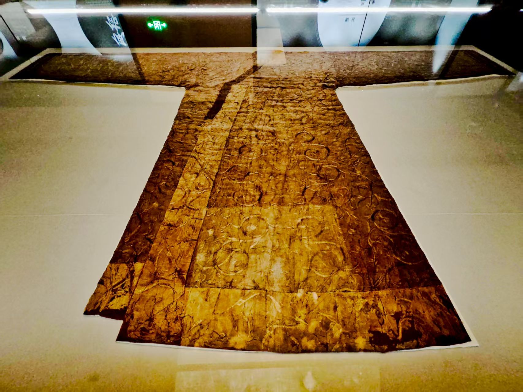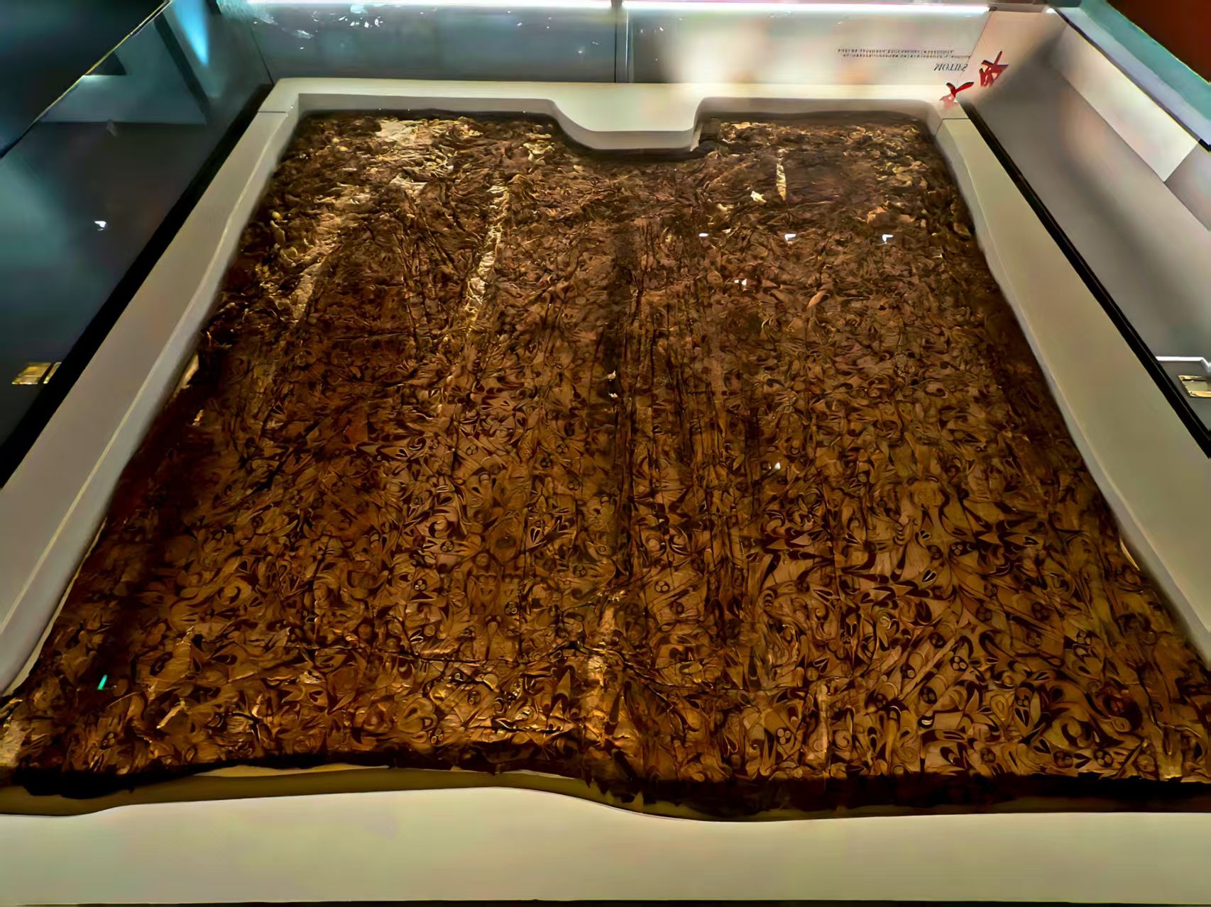 蟠龍飛鳳紋繡淺黃絹面衾,湖北荊州馬山一號楚墓出土。王郭驥攝。