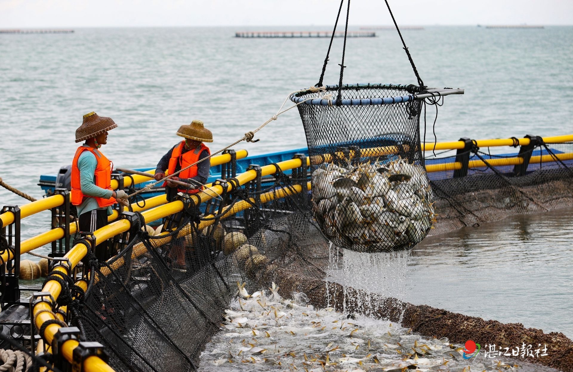 雷州流沙灣海洋牧場(chǎng)的金鯧魚捕撈。