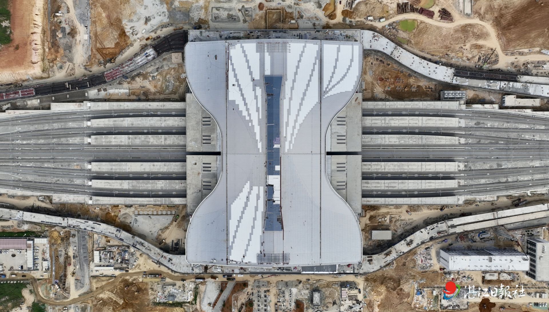 10月21日上午,廣湛高鐵湛江北站站房頂棚上施工人員正在進行裝飾鋁板安裝作業(yè)。隨著廣湛高鐵通車的日益臨近,湛江北站站房裝修工作正在加班加點有序推進,外部裝修工作已接近尾聲,站房內(nèi)的裝修也有望在11月中旬完工。