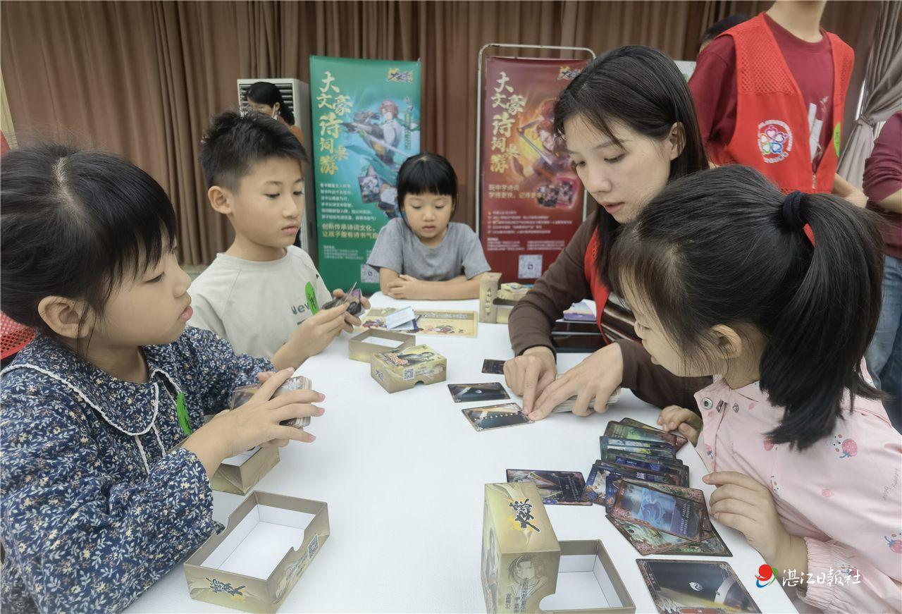 在溫情的“親子背詩”環節,家長與孩子并肩而坐,共同吟誦李白的經典名篇,進行情感交流與文化傳承。趣味體驗環節,“詩詞卡牌桌游”將現場氣氛推向高潮,孩子們化身“小俠客”,通過卡牌對決、詩句對戰等游戲方式,在歡聲笑語中鞏固了詩詞記憶,理解了詩歌背后的典故與情感。