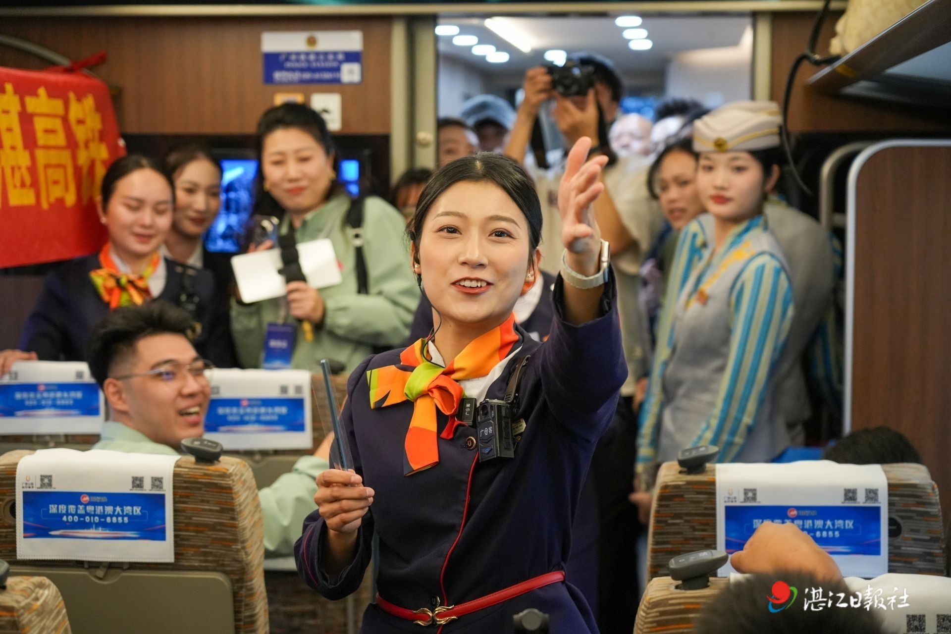 12月22日,廣湛高鐵通車,湛江北站至廣州白云站首發列車上,乘務組為旅客舉行互動小活動。 記者張鋒鋒 攝